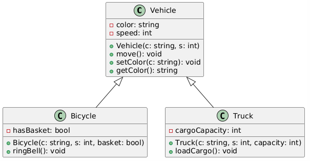 Bicycle(string c, int s, bool basket) : Vehicle(c, s), hasBasket(basket) {}