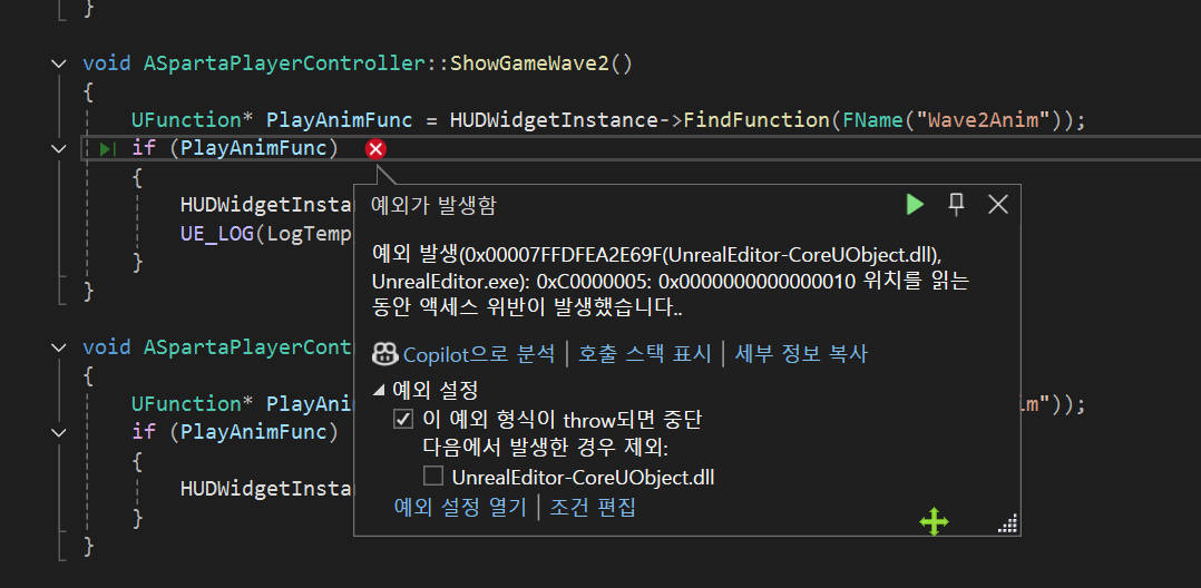 HUDWidgetInstance 예외 체크를 안했다.