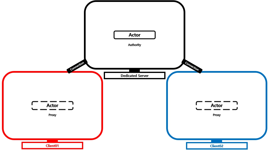 - 네트워크로 연결된 다른 PC에서의 액터 역할
